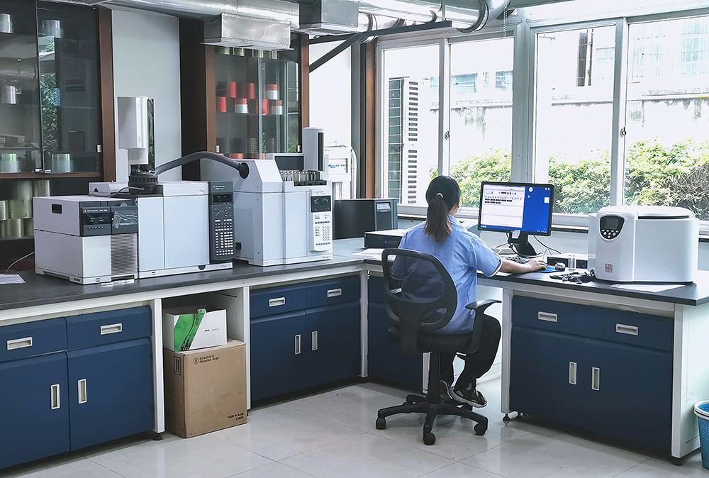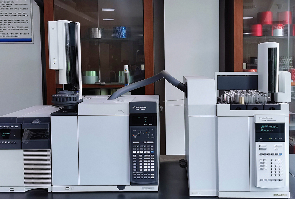 • 公司設(shè)有獨(dú)立的物理性能檢測(cè)室1個(gè),安全性指標(biāo)檢測(cè)室2個(gè),有氣相色譜儀、珀金埃爾儀器(PE)ICP-OES、質(zhì)譜儀、頂空進(jìn)樣儀等,能對(duì)各品種煙用內(nèi)襯紙的溶劑殘留、特定芳香胺等安全性指標(biāo)和各項(xiàng)物理指標(biāo)實(shí)施檢測(cè)。